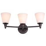 DVP7243CH-OP Finish: Chrome Pictured in Oil Rubbed Bronze Features: -Bath vanity. -Georgetown collection. -Available in buffed nickel, chrome or oil rubbed bronze finish. -Oil rubbed bronze or buffed nickel finishes: Half opal glass shade. -Chrome finish: Opal glass shade. -Can be mounted upwards or downwards. Specifications: -Accommodates (3) 100W medium base bulbs. -Overall dimensions: 9.5'' H x 5.75'' W x 22.5'' D..../ Georgetown Three Light Bath Vanity Finish: Chrome / Theme Bathrooms